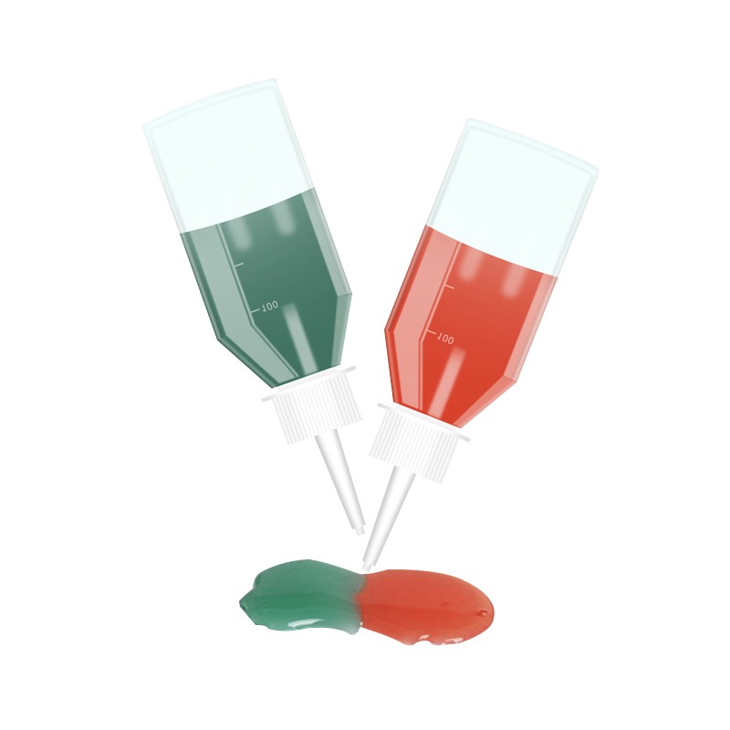 ① 將 A 膠和 B 膠按目視比 1:1 簡單混合后,將膠涂于被粘接材料上,貼合壓緊。