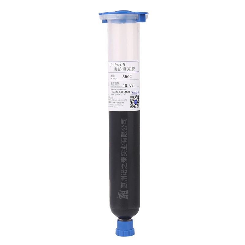 一種單組份、改性環(huán)氧樹脂膠,用于BGA、CSP和Flip chip底部填充制程,它能形成一致和無缺陷的底部填充層,能有效降低由于硅芯片與基板之間的總體溫度膨脹特性不匹配或外力造成的沖擊。受熱固化后,可提高芯片連接后的機械結構強度。
